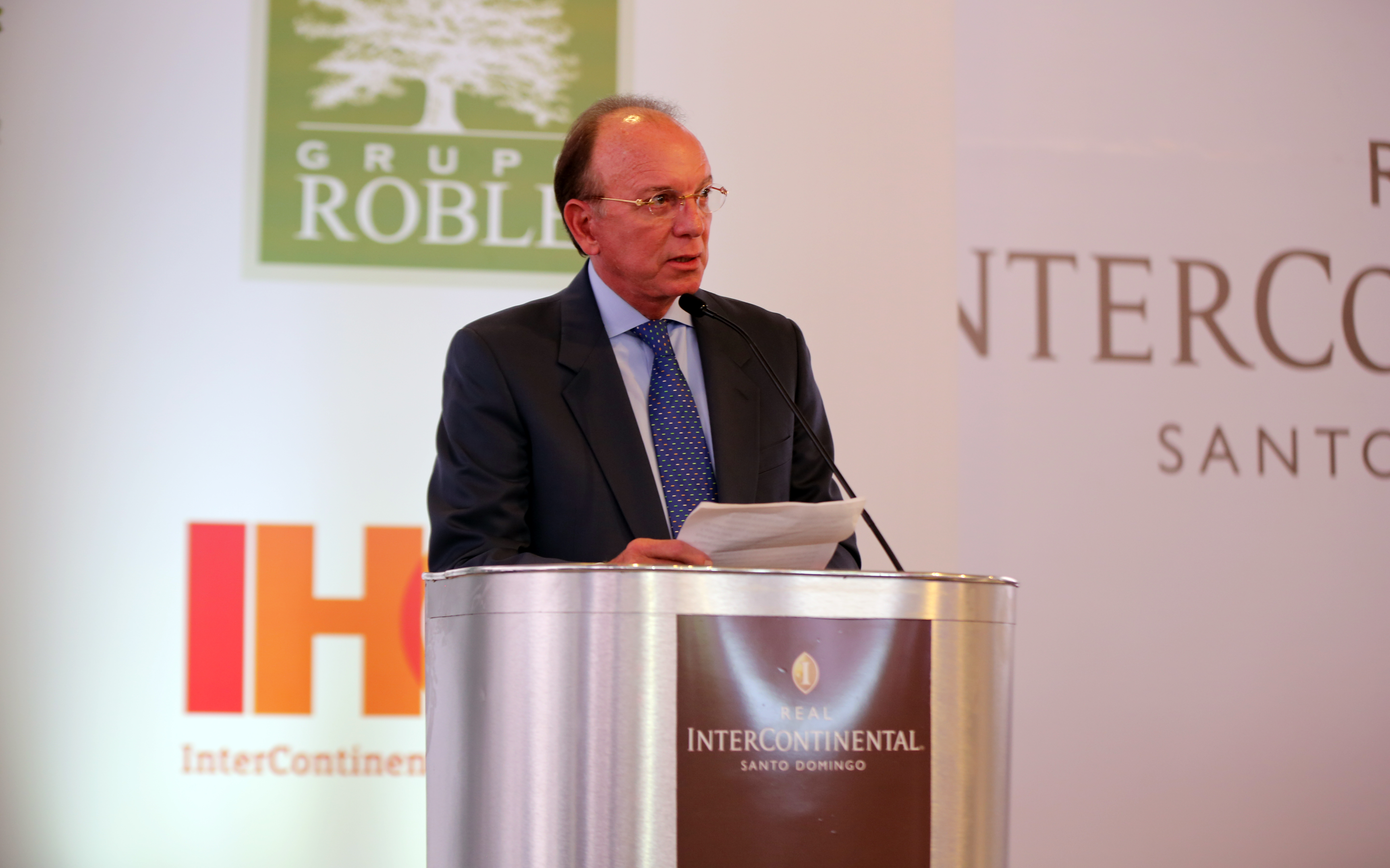 Álvaro Diago, director de Operaciones para Latinoamérica y el Caribe de InterContinental Hotel, durante su discurso en el acto inaugural, que contó con la presencia del presidente de la República, Danilo Medina y altos ejecutivos del sector hotelero y turístico.