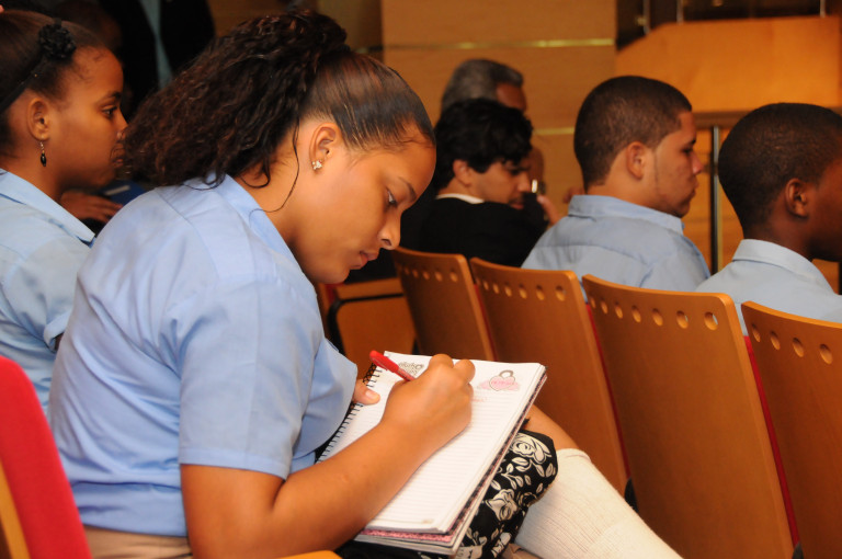 Jóvenes estudiantes, presentes durante el acto del Pacto Nacional para la Reforma Educativa, efectuado en el Auditorio Juan Bosch, de la Biblioteca Nacional, en esta ciudad. Foto: Ángel Álvarez/ Presidencia República Dominicana Nota de prensa: presidencia.gob.do/noticias/presidente-medina-convoca-sum... Video YouTube: www.youtube.com/watch?v=sN9CjJPzx0E