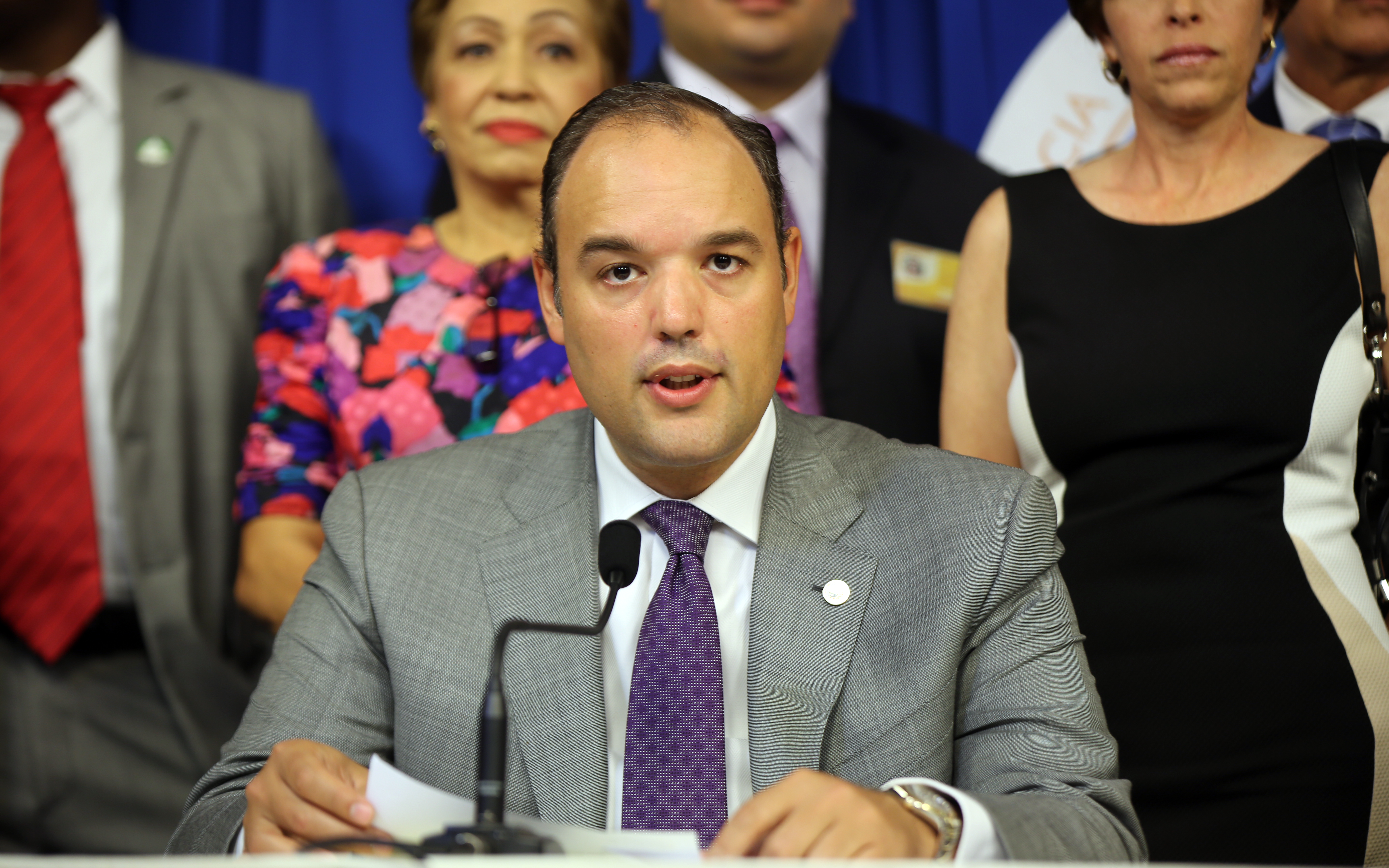 Participación de José del Castillo, ministro de Industria y Comercio, presente en la conferencia de prensa celebrada hoy en el Salón Orlando Martínez, del Palacio Presidencial.