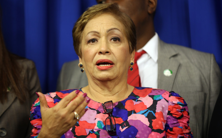 La directora ejecutiva del Consejo Nacional de Zonas Francas de Exportación (CNZFE), Luisa Fernández Durán, presente durante conferencia de prensa.