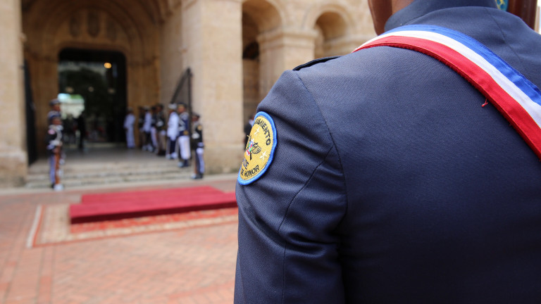 Guardias de honor rindieron tributo al presidente Danilo Medina a su llegada a la Catedral Primada de América.