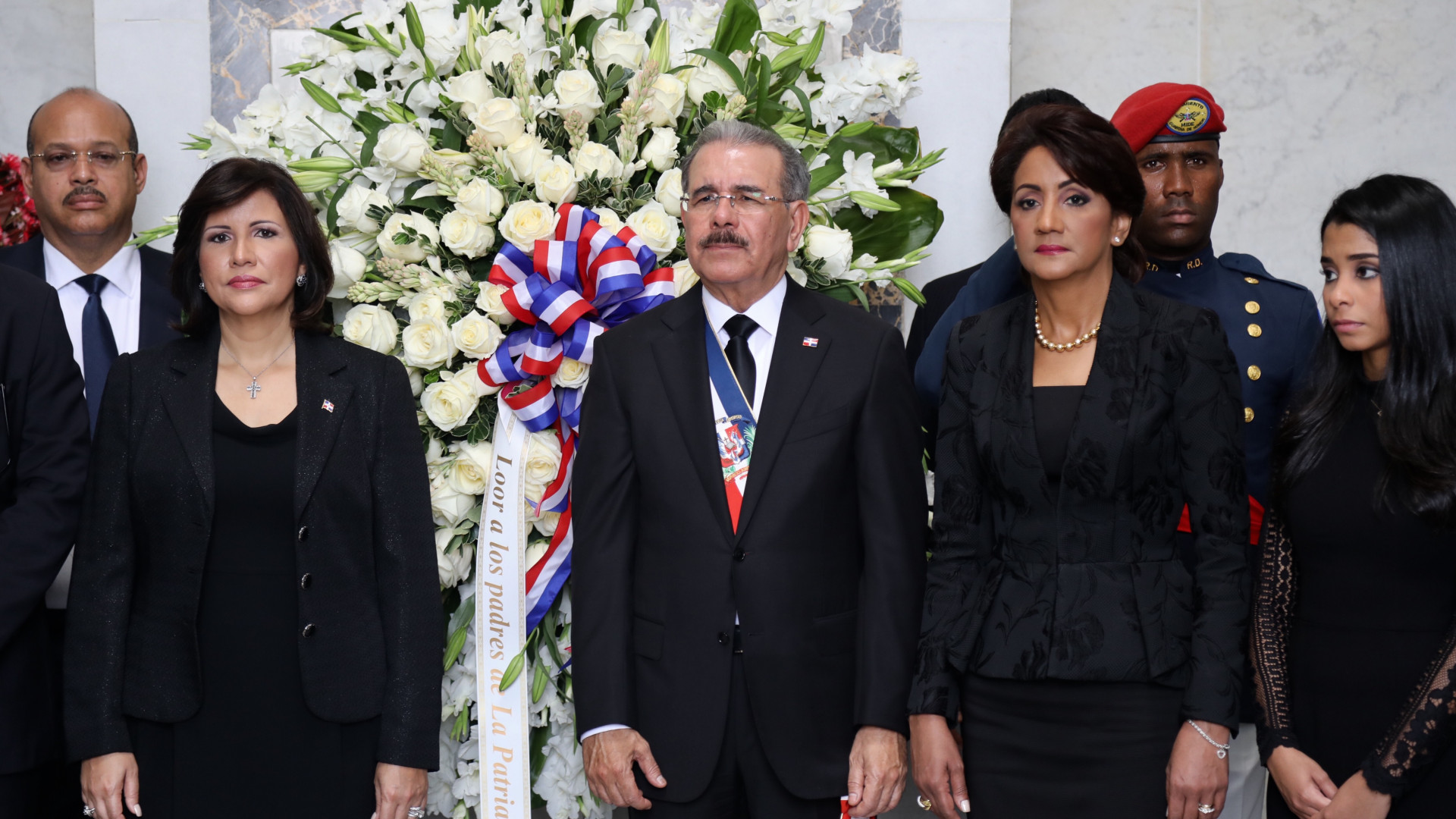 Con la entrega de la ofrenda floral en el Altar de la Patria, el presidente Danilo Medina, acompañado de la primera dama Cándida Montilla de Medina y sus hijas; de la vicepresidenta Margarita Cedeño de Fernández, funcionarios, autoridades civiles y militares, rindió tributo a los Padres de la Patria.