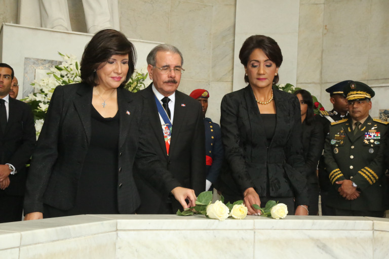 El presidente Danilo Medina, acompañado de la primera dama Cándida Montilla de Medina y sus hijas Sibeli y Vanessa; de la vicepresidenta Margarita Cedeño de Fernández, funcionarios,autoridades civiles y militares, rindió tributo a los Padres de la Patria, durante los actos conmemorativos al 173 aniversario de la Independencia Nacional en el Altar de la Patria. Lunes 27 de Febrero de 2017.- RFL