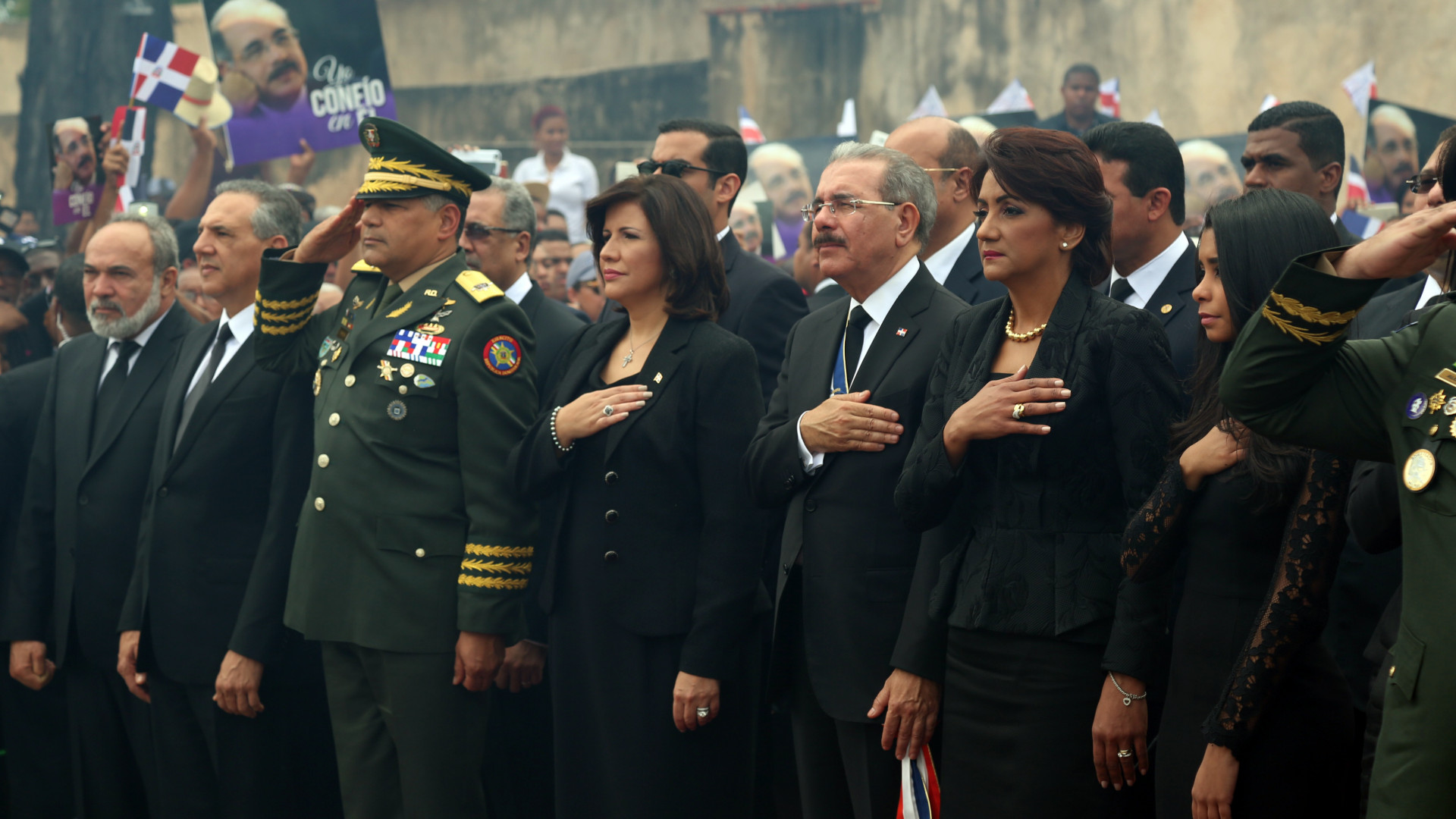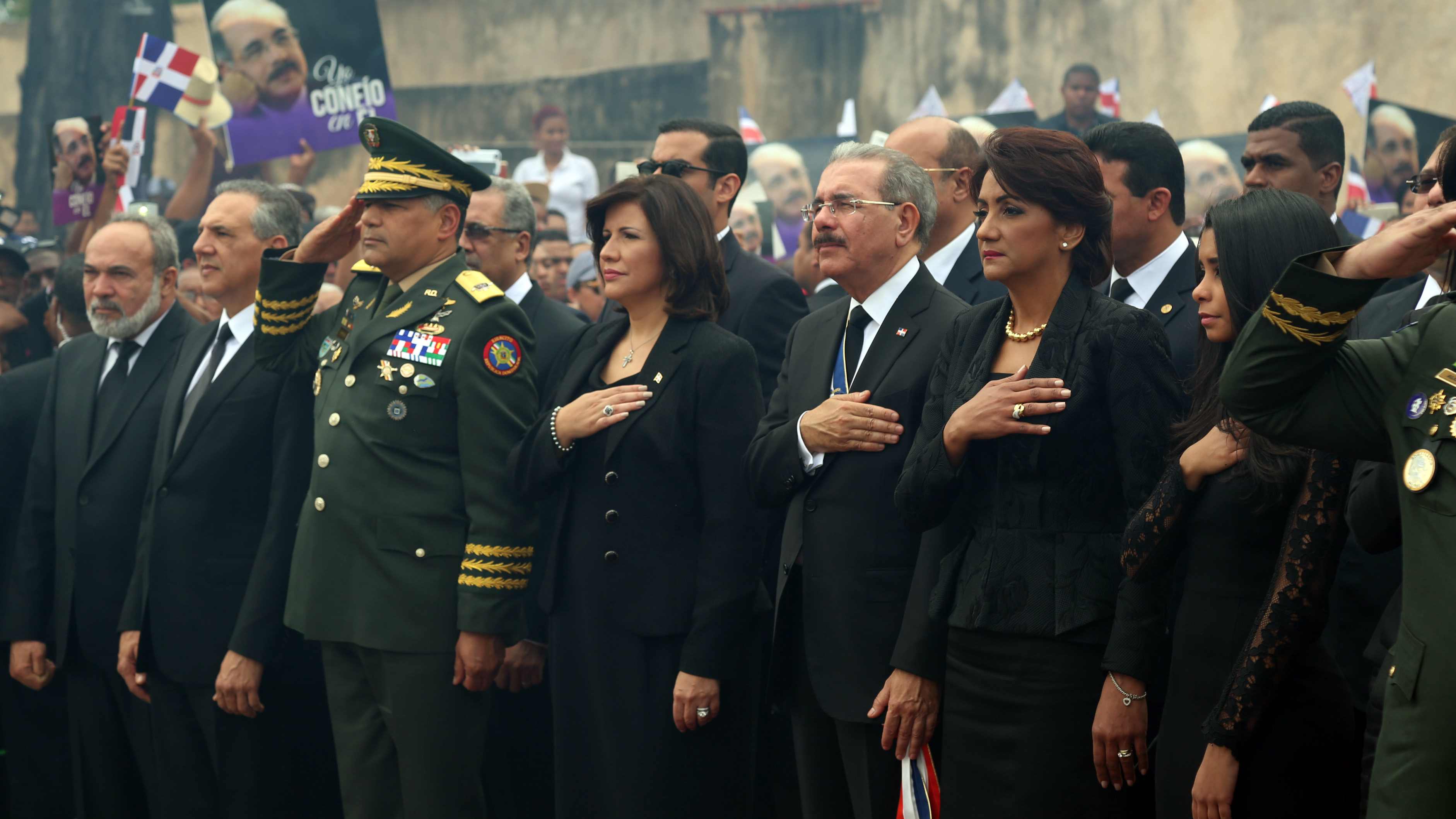 En el Altar de la Patria, el presidente Danilo Medina recibió los honores correspondientes a su investidura. Le acompañaron, la primera dama Cándida Montilla de Medina y sus hijas; la vicepresidenta Margarita Cedeño de Fernández, funcionarios, autoridades civiles y militares.