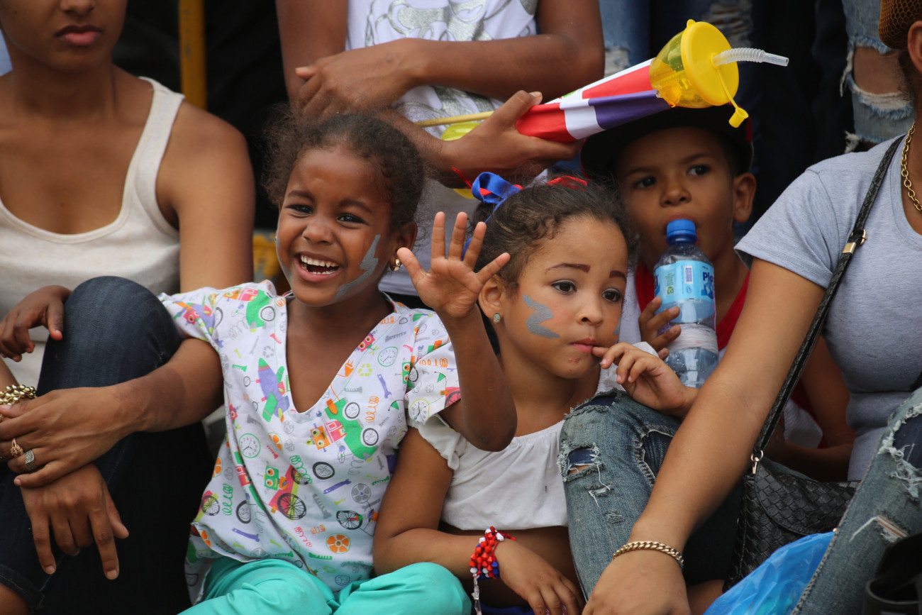 La alegría delos niños y de la multitud se mantuvo todo el tiempo, mostrando también la enseña tricolor durante el desfile militar.