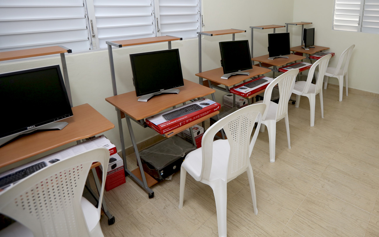 Salón de informática del Centro Comunal Las Salinas, en Barahona, inaugurado hoy con la presencia del Mandatario y las principales autoridades de la zona.