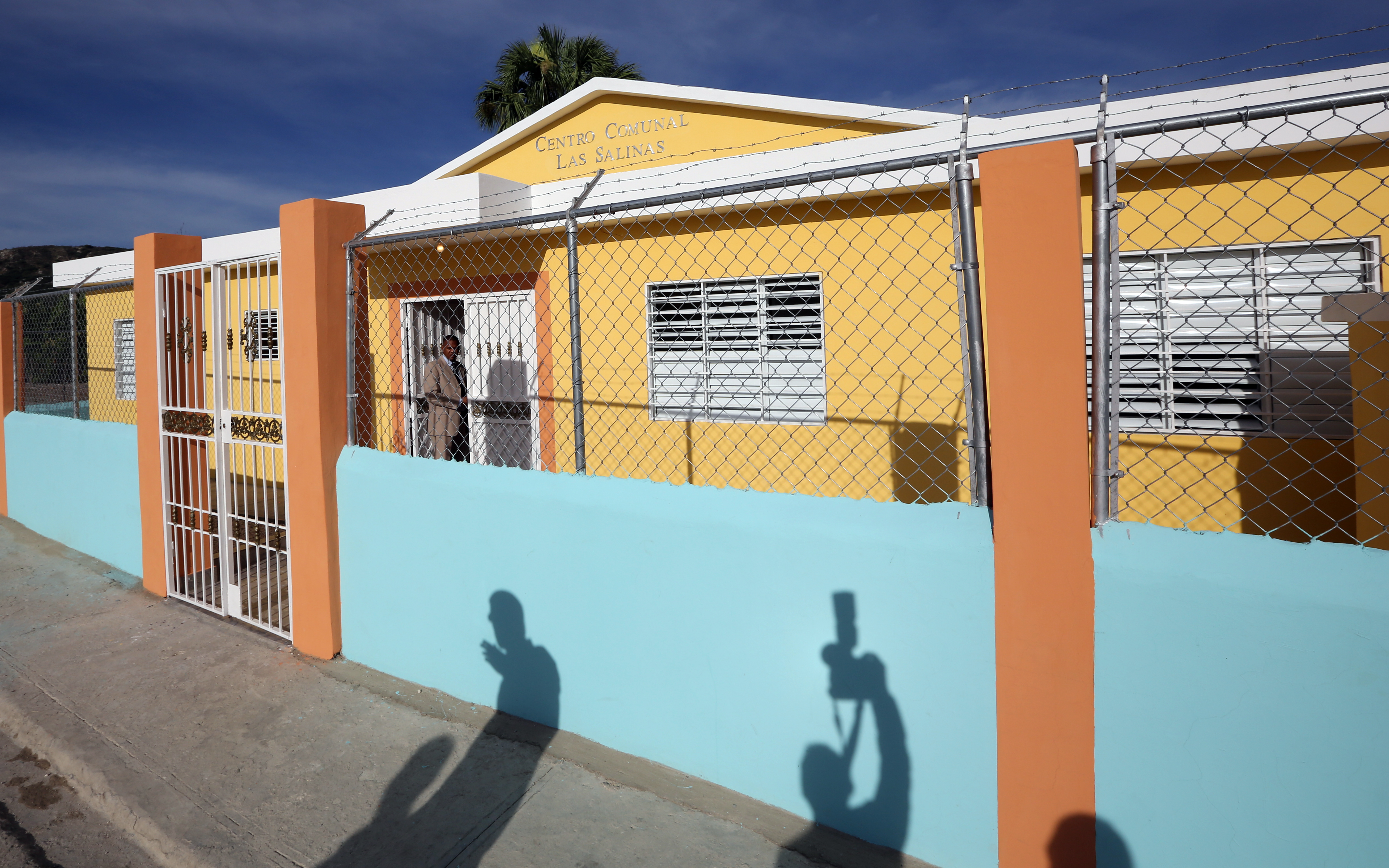 Vista exterior del Centro Comunal Las Salinas, inaugurado hoy por el presidente de la República, Danilo Medina Sanchez.