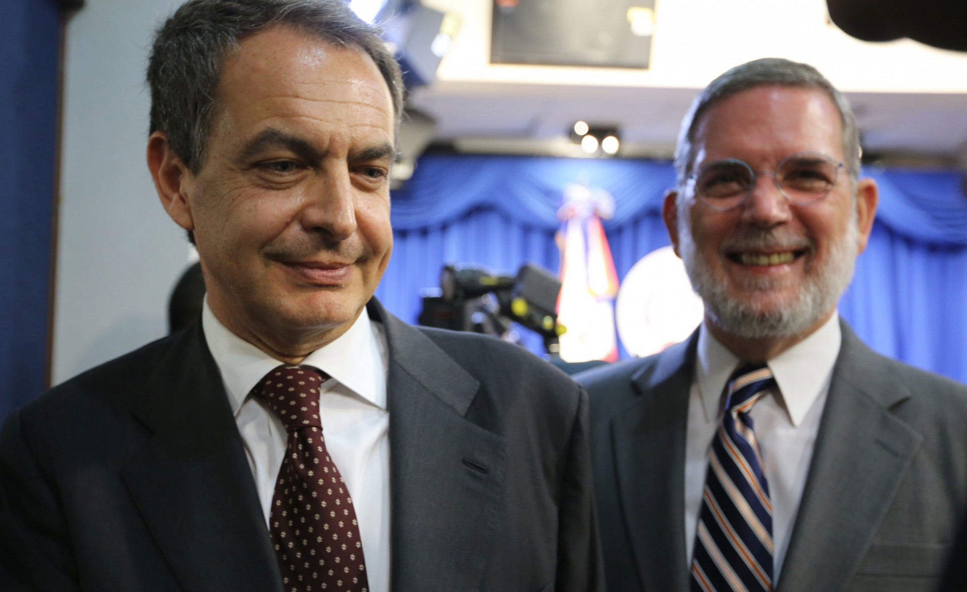 José Luis Rodríguez Zapatero, ex presidente del Gobierno español y Roberto Rodríguez Marchena, director de DICOM, durante conferencia de prensa efectuada en el Salón Orlando Martínez del Palacio Nacional.