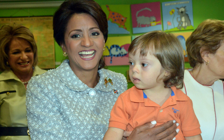 Cándida Montilla de Medina, primera dama de la República, sosteniendo en brazos infante del Centro de Desenvolvimiento Infantil Diferencias, de Portugal, atendiendo invitación de su homóloga, señora María Alves Cavaco Da Silva. Foto: Bolívar Lluberes / Presidencia República Dominicana. Nota de prensa: presidencia.gob.do/noticias/primera-dama-de-portugal-dice... Video YouTube: www.youtube.com/watch?v=nM6B97caSwM