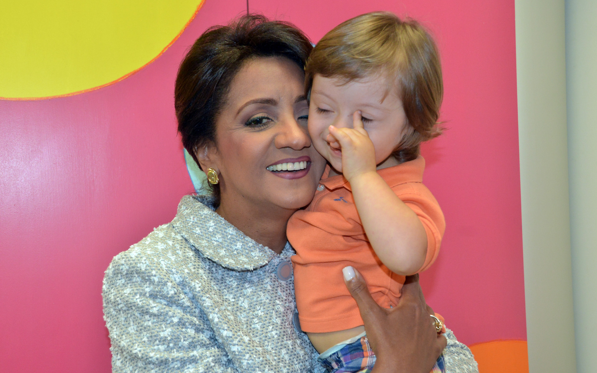 Cándida Montilla de Medina, primera dama de la República, sosteniendo en brazos infante del Centro de Desenvolvimiento Infantil Diferencias, de Portugal, atendiendo invitación de su homóloga, señora María Alves Cavaco Da Silva.