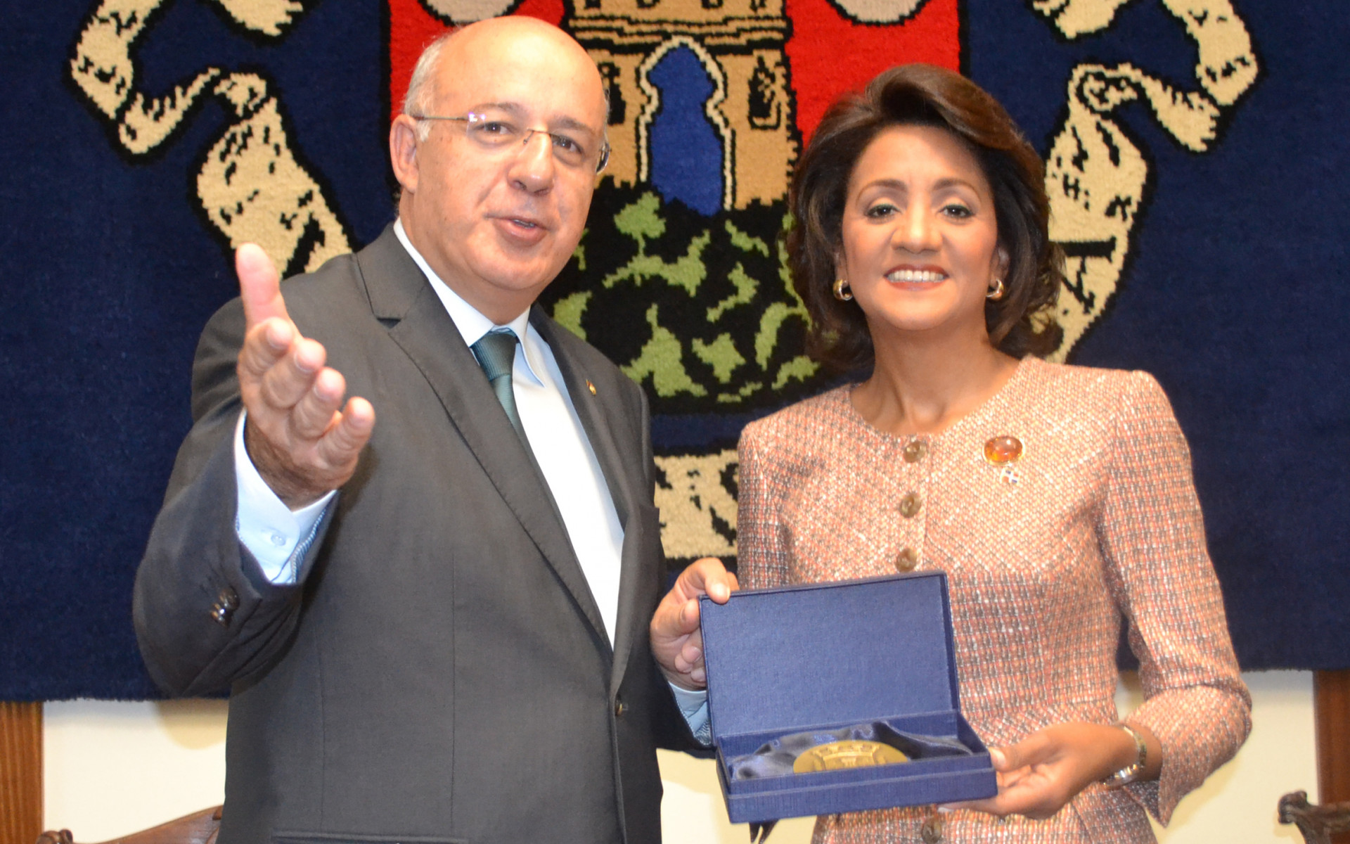 Participación de la primera dama de la República, Cándida Montilla de Medinas, al recibir de Fernando Roboredo Seara, presidente de la Cámara Municipal de Sintra, Portugal, la medalla de reconocimiento y las llaves de la ciudad, distinción honorífica que se otorga a personalidades visitantes.