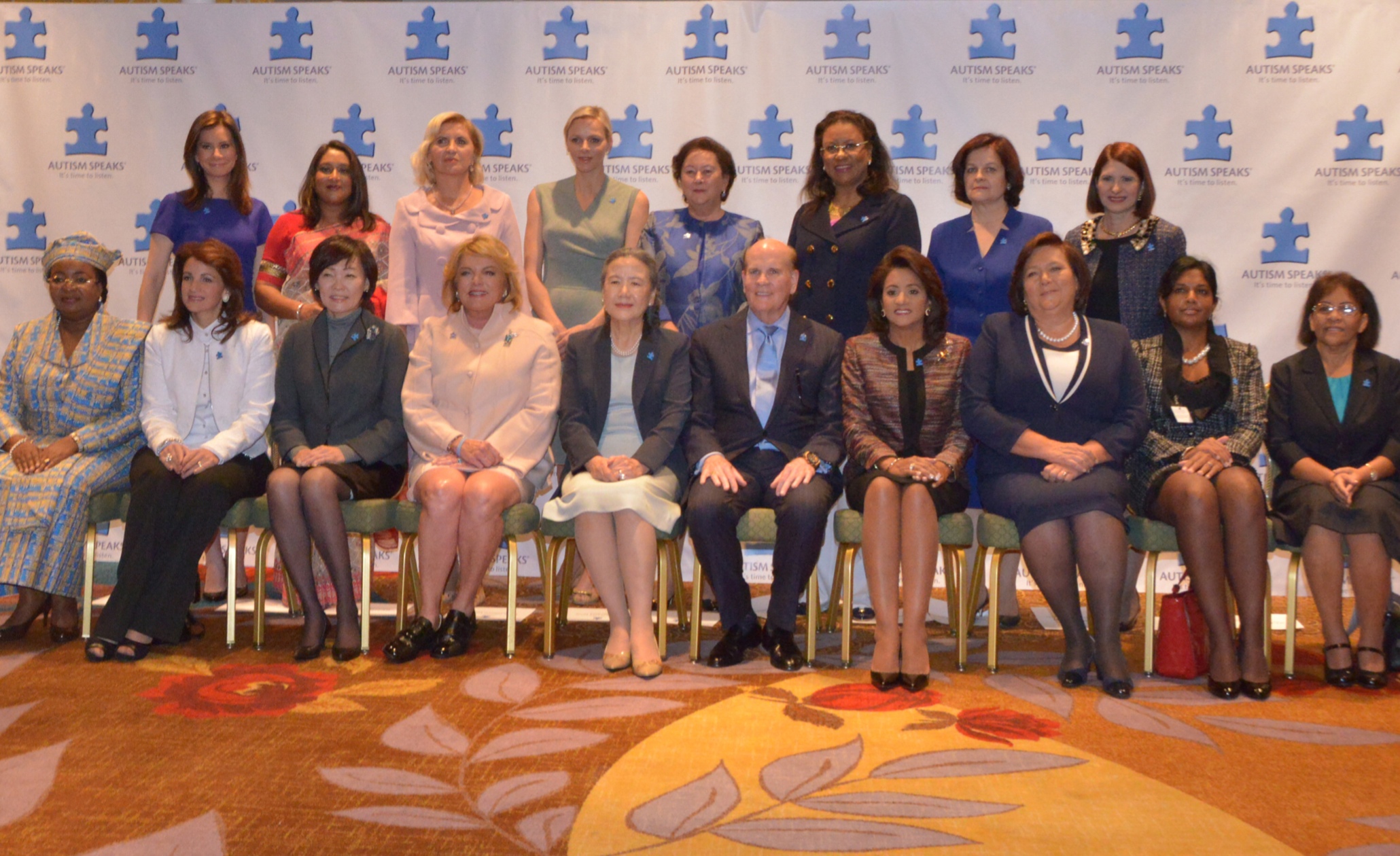 Sentada al centro, Cándida Montilla de Medina, señora del presidente Medina, durante la Sexta Conferencia Mundial Anual de Autism Speaks, en Nueva York. Figuran junto a ella los esposos Suzanne y Bob Wright, presidenta y vicepresidente de Autism Speaks, respectivamente; Yoo Soon-taek, esposa del secretario general de la ONU, Ban Ki Moon; la primera dama de Polonia,Anna Komorowska; princesa Charlene del Principado de Mónaco; el embajador de Filipinas ante la ONU, Libra N. Cabactulan y Jacob Kumaresan, director ejecutivo de la oficina de la Organización Mundial de la Salud (OMS), y otras personalidades.