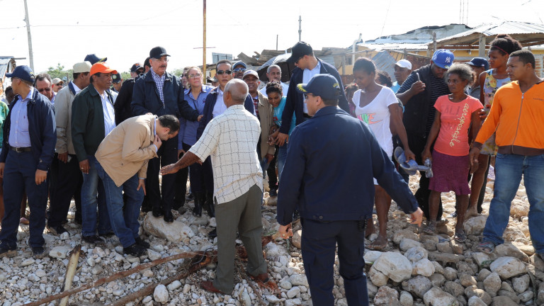 Visita del presidente Danilo Medina a familias afectadas por las recientes lluvias, en las comunidades de Pescadería, Come Callao y Habanero, de Barahona, donde dispuso la pronta ayuda solidaria.