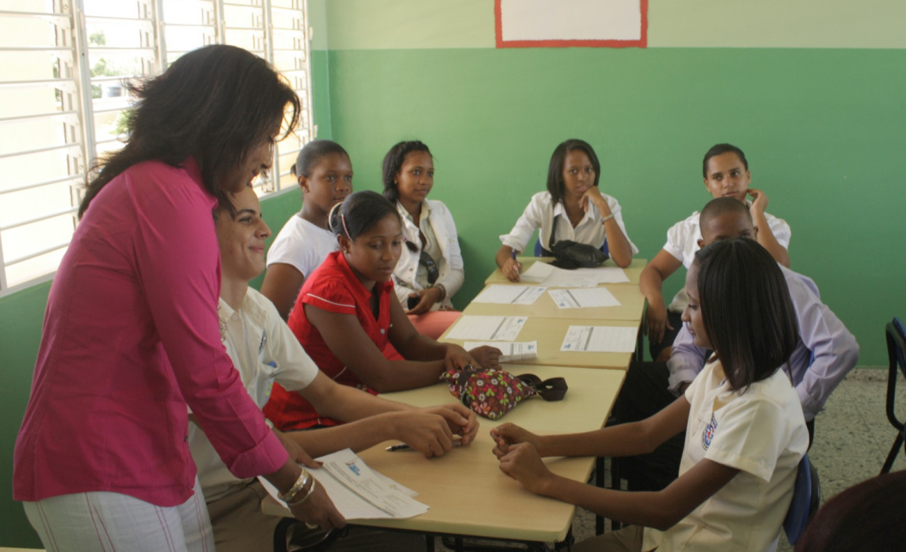 Instructores y estudiantes presentes en las consultas del Pacto Nacional por la Reforma Educativa, efectuadas en el Centro Educativo Juan Arturo Bermúdez, en San Pedro de Macorís.