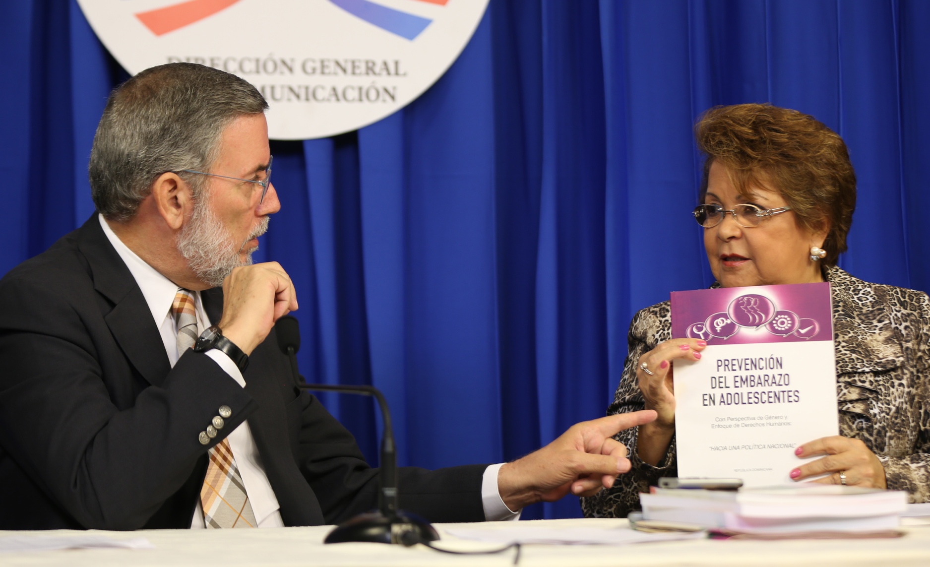 Roberto Rodríguez Marchena, director de DICOM y Alejandrina Germán, ministra de la Mujer, invitada del Encuentro con los Medios, en el Salón Orlando Martínez del Palacio Nacional. Foto: Ángel Álvarez Rodríguez/ Presidencia República Dominicana.