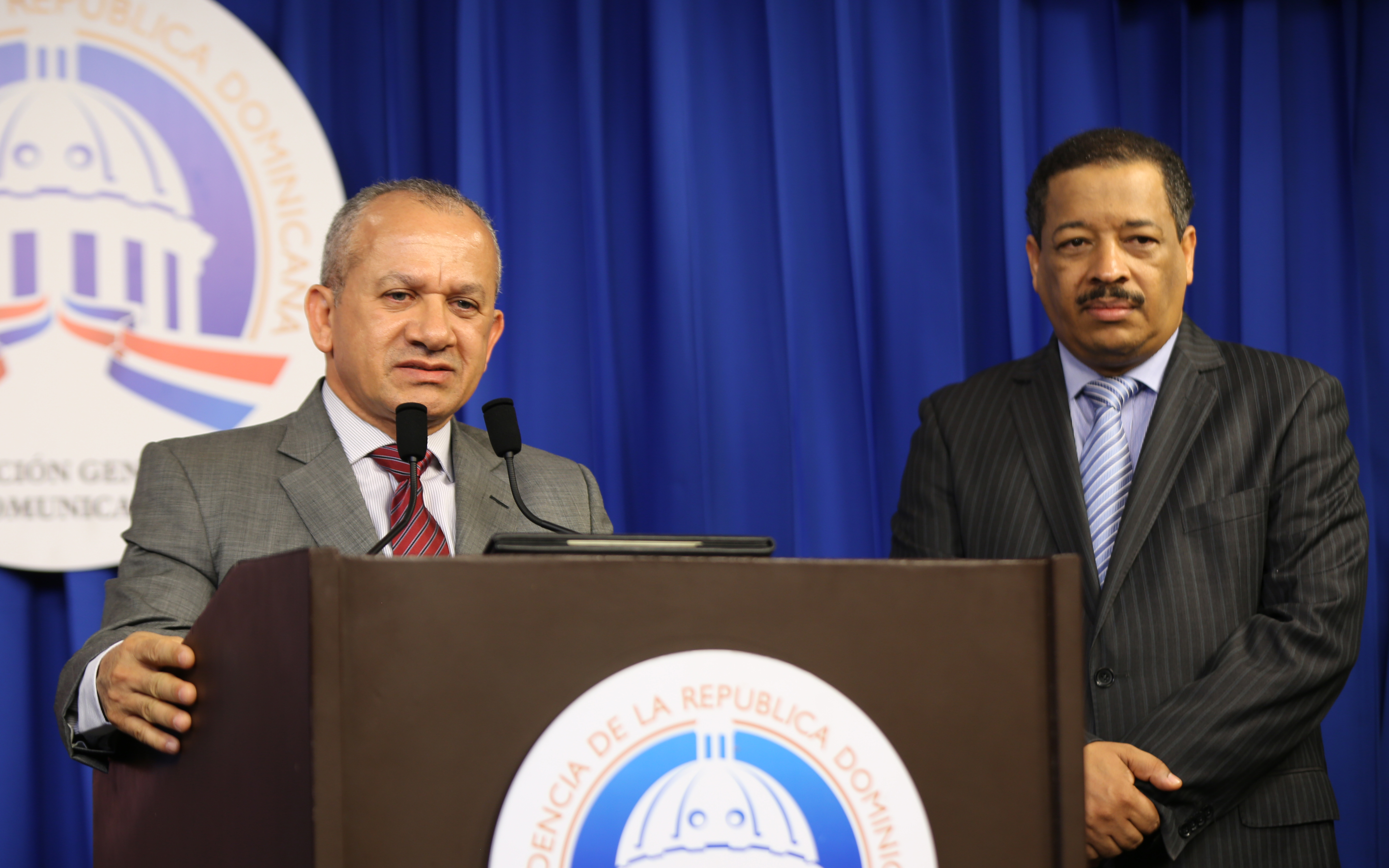 Ministro de Salud Pública y Presidente de la JCE, durante la conferencia de prensa, efectuada en el Salón Orlando Martínez, del Palacio Nacional. Foto: Ángel Álvarez Rodríguez / Presidencia República Dominicana.
