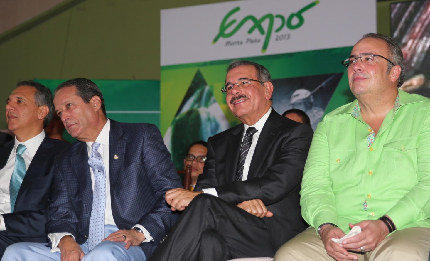 Presidente Danilo Medina acompañado del senador Charllie Mariottti; el presidente del Senado,Reinaldo Pared Pérez; y José Ramón Peralta, ministro Administrativo de la Presidencia, presentes en el acto inaugural de la feria.