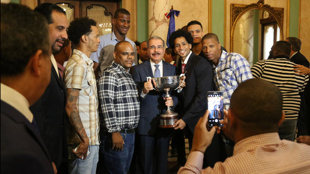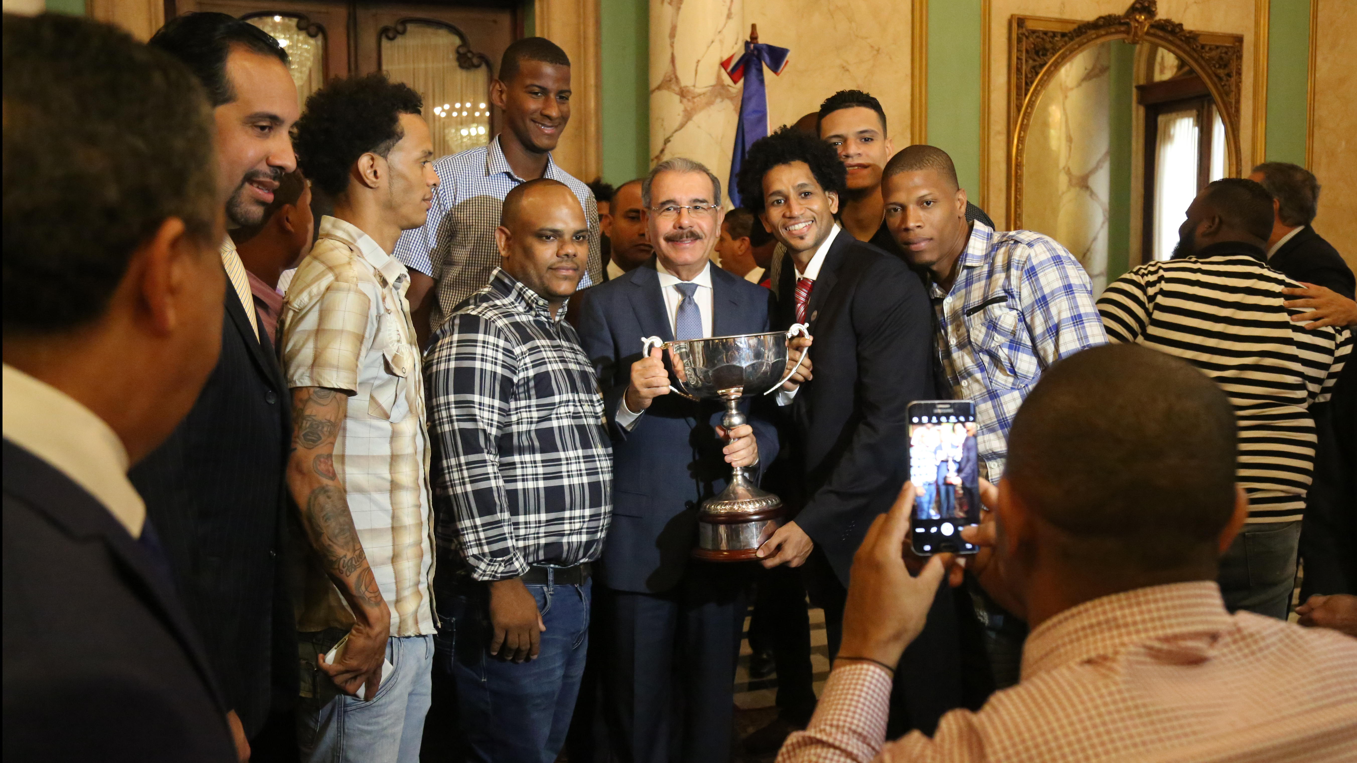En el encuentro, que tuvo lugar en el Salón de Embajadores del Palacio Nacional, los jugadores mostraron al presidente de la República el trofeo ganado.