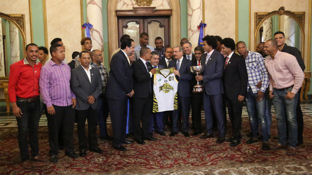 Danilo Medina recibe a Club Rafael Barías, equipo campeón baloncesto del Distrito Nacional