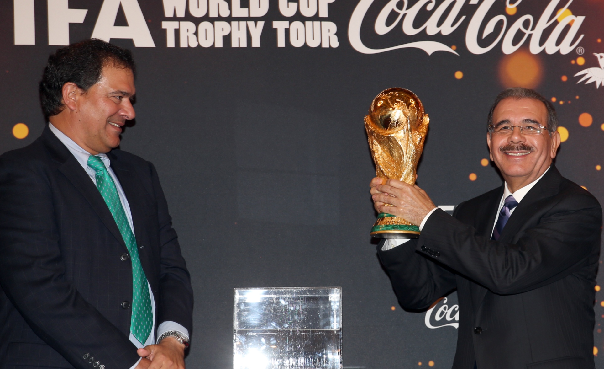 Danilo Medina recibe trofeo Copa Mundial de la FIFA; desea éxito a organizadores
