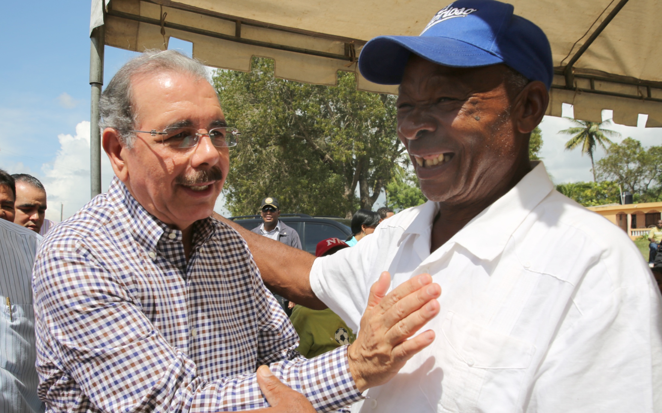 El presidente Medina mientras saluda moradores de la zona, presentes al momento de llegar a la Fundación Renacer con Niños Huérfanos con Sida (FURENIHSI), durante su Visita Sorpresa de este domingo.