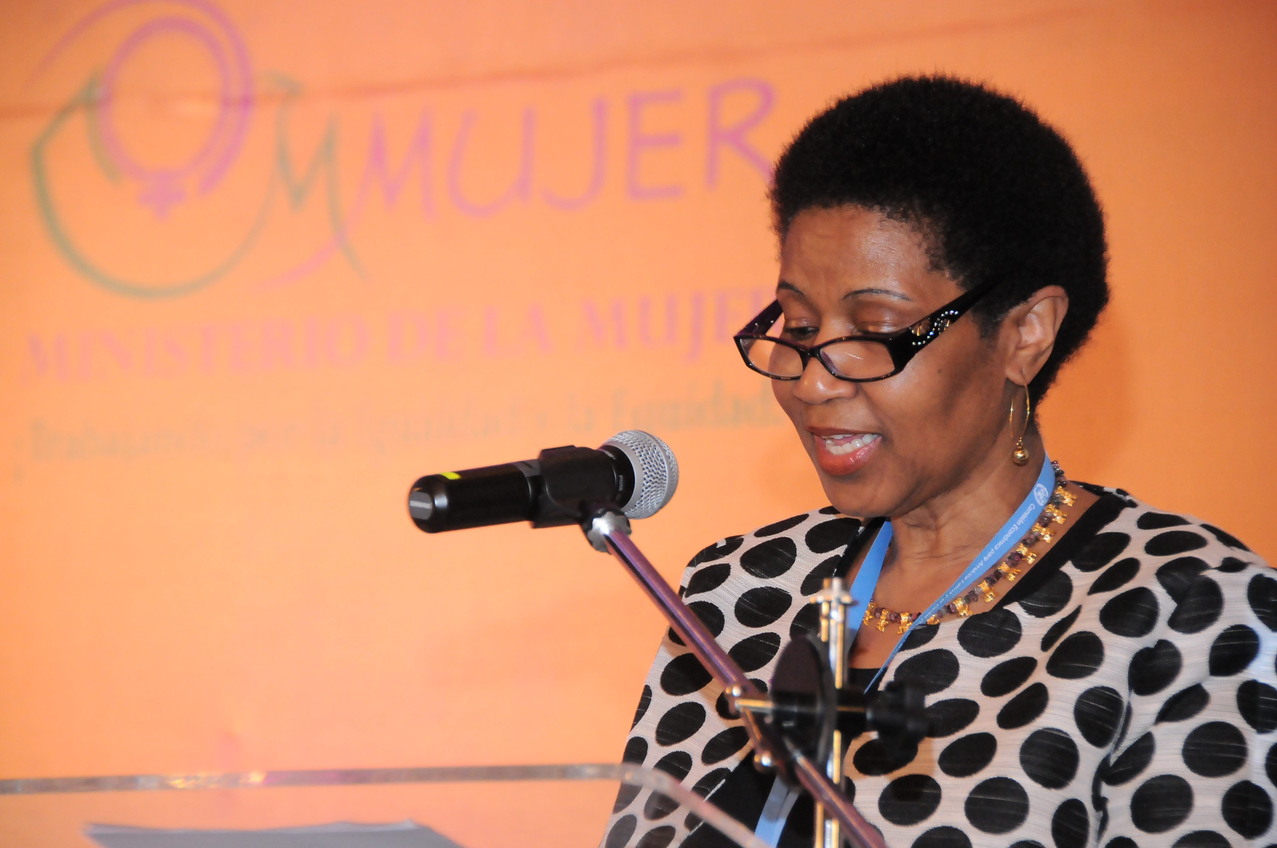 Señora Phumzyle Mlambo Ngcuka, directora ejecutiva de ONU-Mujeres, durante su participación en el acto inaugural de la XII Conferencia Regional sobre la Mujer de América Latina y el Caribe, que se celebra del 15 al 18 del presente mes, en un hotel de la capital dominicana.