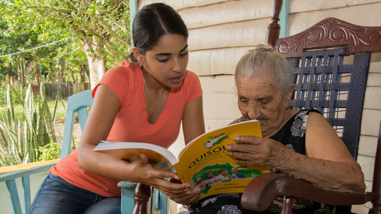 Inspiradora historia narrada por la joven María Torres, a quien le salió del corazón alfabetizar a su abuelita y a ocho envejecientes en la comunidad de Puñal, de la provincia Santiago, mediante el Plan Nacional de Alfabetización "Quisqueya Aprende Contigo".
