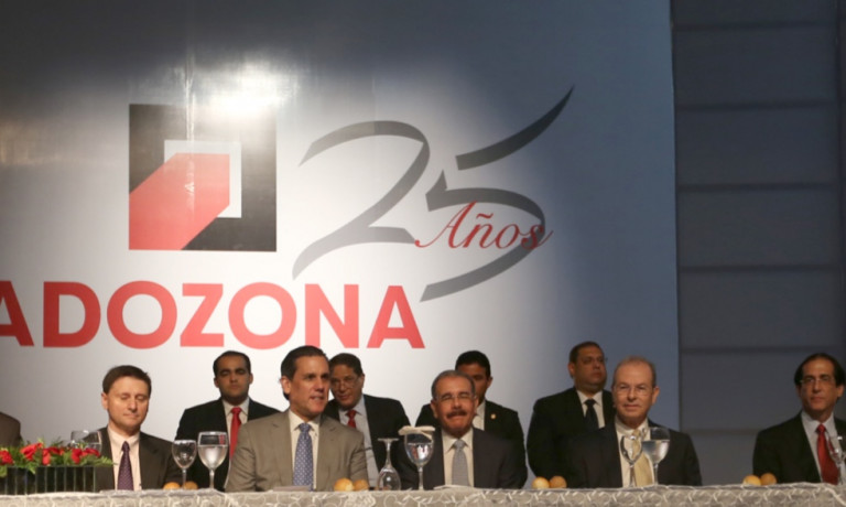 Participación del presidente Danilo Medina, al encabezar junto al presidente de la institución Aquiles Bermúdez, el almuerzo anual conmemorativo por el 25 aniversario de la Asociación Dominicana de Zonas Francas (ADOZONA).