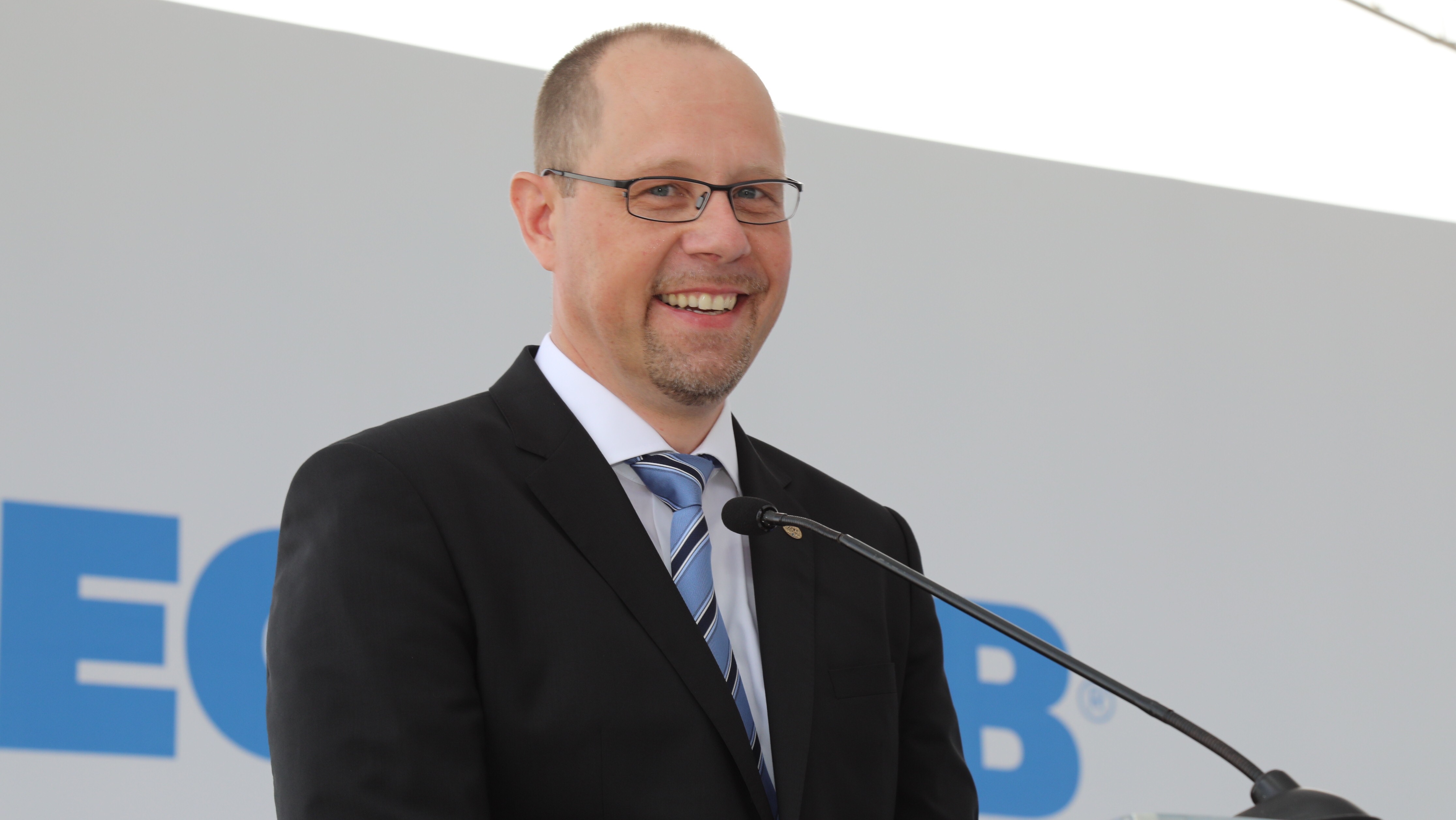Kai Riess, vicepresidente de Cadena de Suministro para el Cuidado de la Salud Global de Ecolab, durante su discurso.