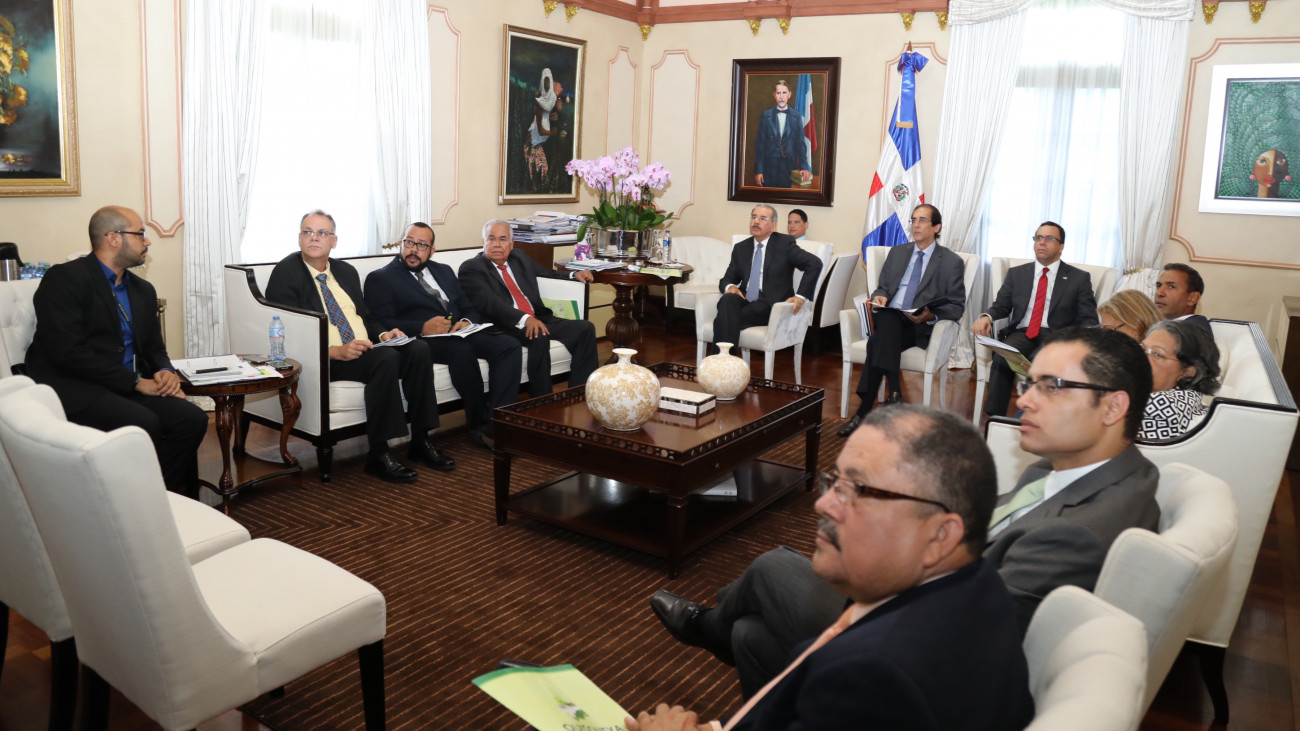 El presidente Danilo Medina reunido con el equipo técnico del Plan Nacional de Alfabetización Quisqueya Aprende Contigo, que coordina la Dirección General de Programas Especiales (DIGEPEP), presentes en su despacho del Palacio Nacional.