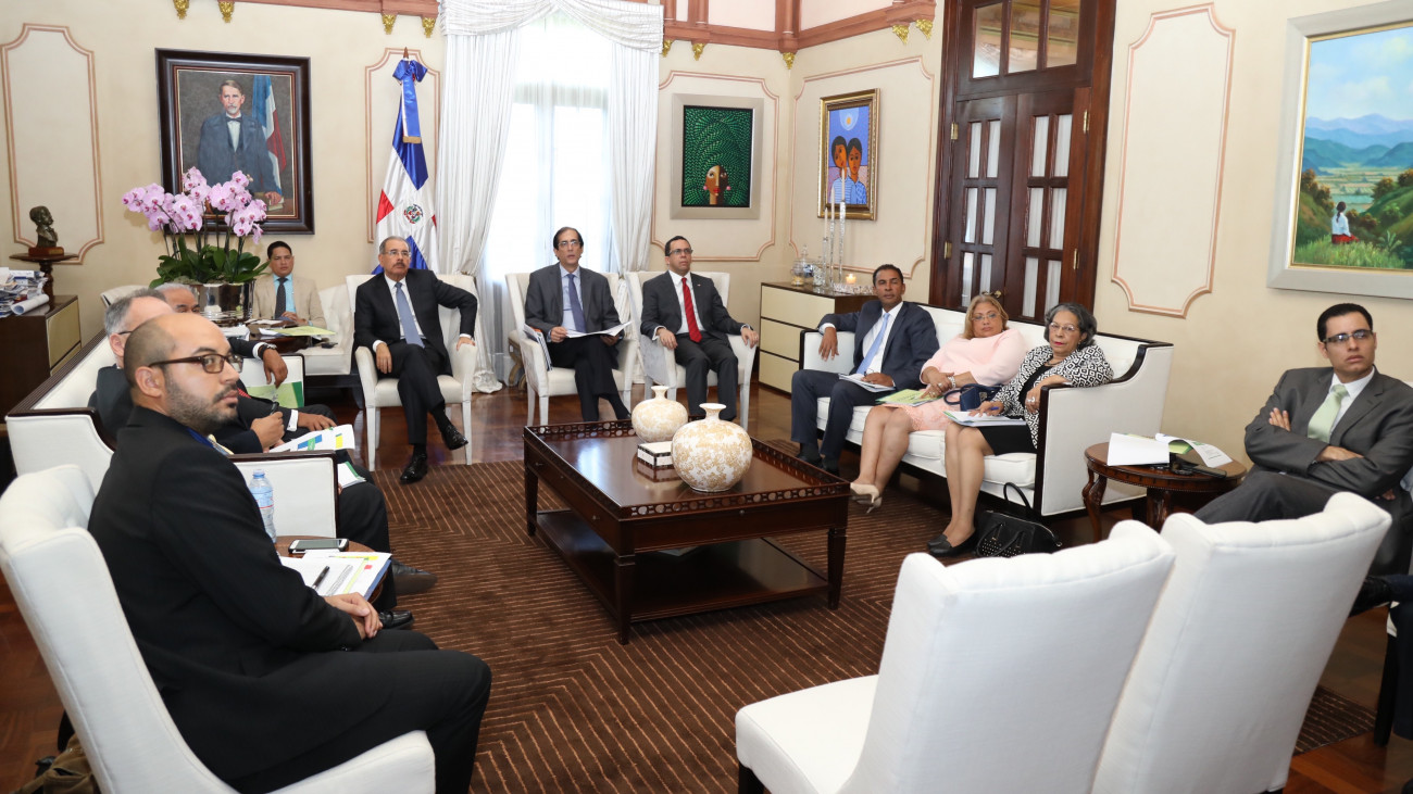 El presidente Danilo Medina reunido con el equipo técnico del Plan Nacional de Alfabetización Quisqueya Aprende Contigo, que coordina la Dirección General de Programas Especiales (DIGEPEP), presentes en su despacho del Palacio Nacional.
