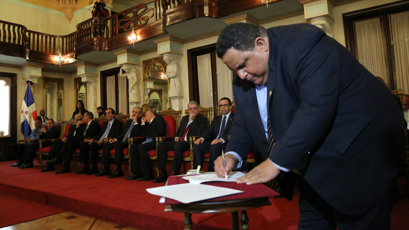 Rafael Hidalgo, presidente de la Federación Dominicana de Municipios, al momento de la firma.