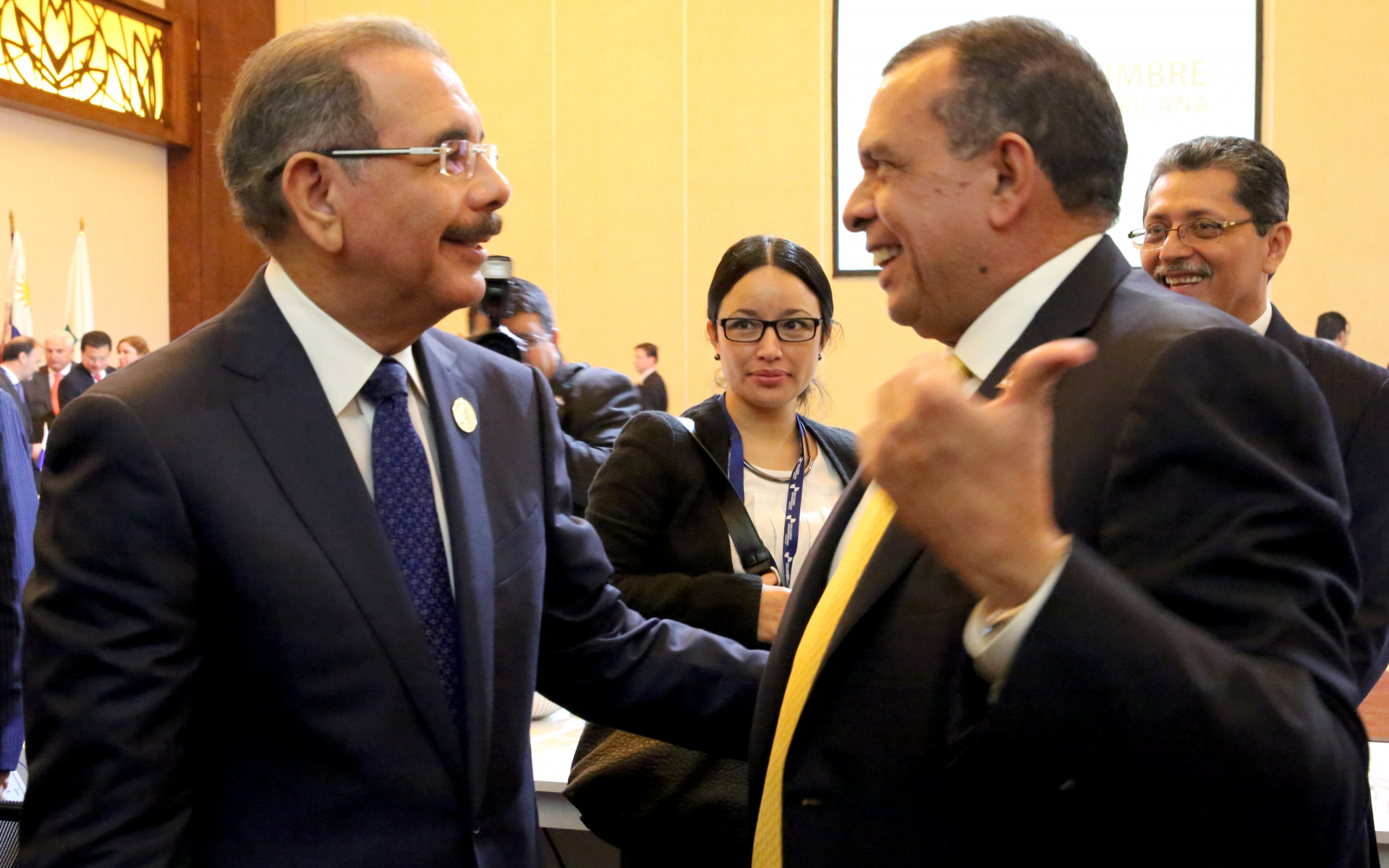 Encuentro del presidente Danilo Medina con Porfirio Lobo Sosa, presidente de Honduras, presente en la cumbre internacional.