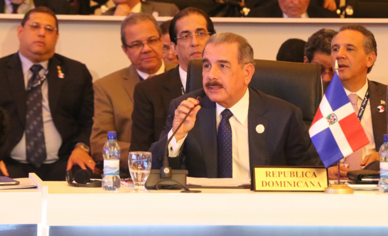 El Mandatario dominicano durante su discurso, donde llamó a los mandatarios iberoamericanos a conectar con las aspiraciones de su población, a no defraudarlos y a pensar juntos, qué tipo de economía les permitiría lograr el bienestar de su gente. Foto: Ángel Álvarez/Presidencia República Dominicana