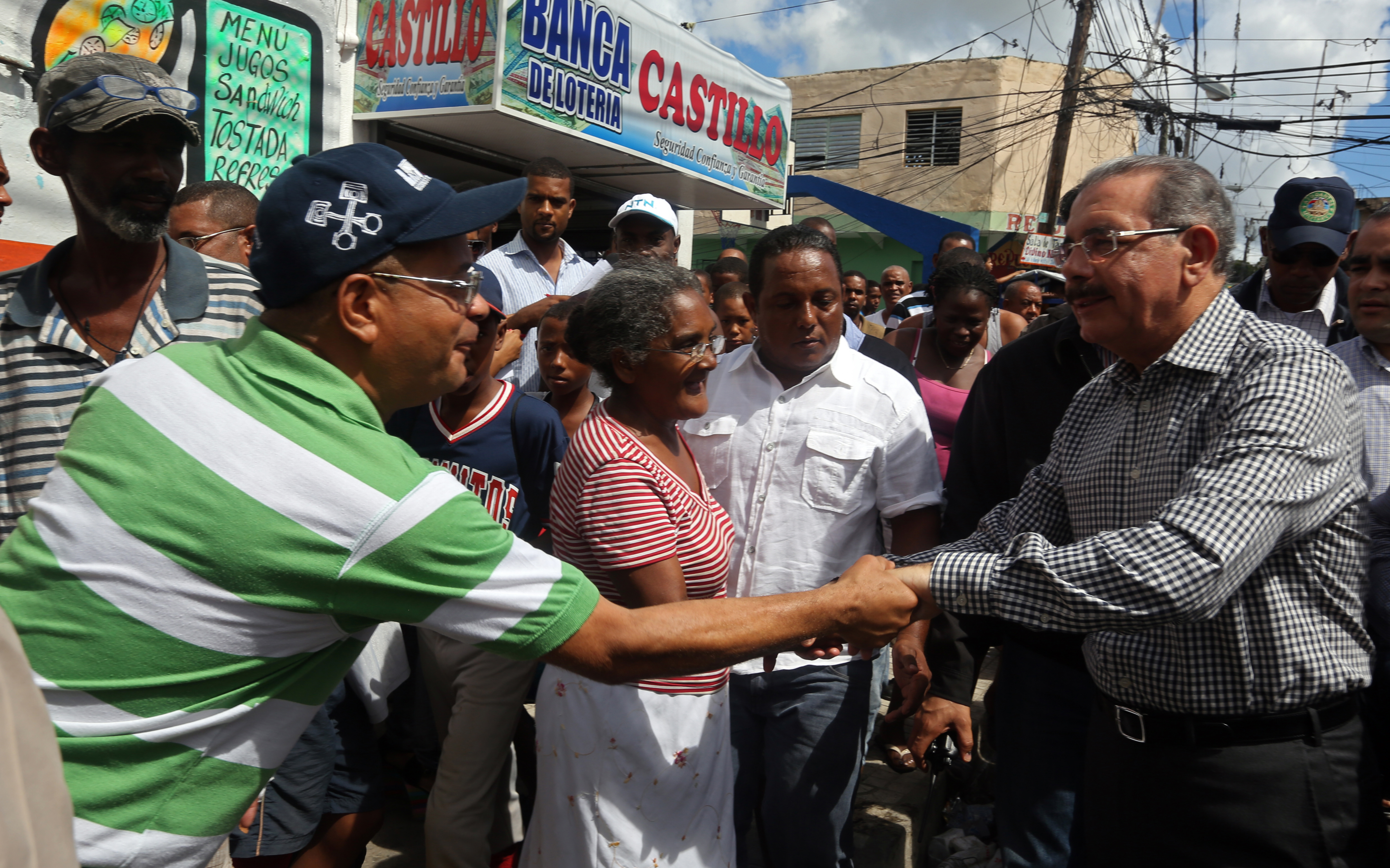 Vista del momento en que el presidente Medina saluda a moradores del barrio Capotillo, donde también fue recibido por una ruidosa y alegre multitud.