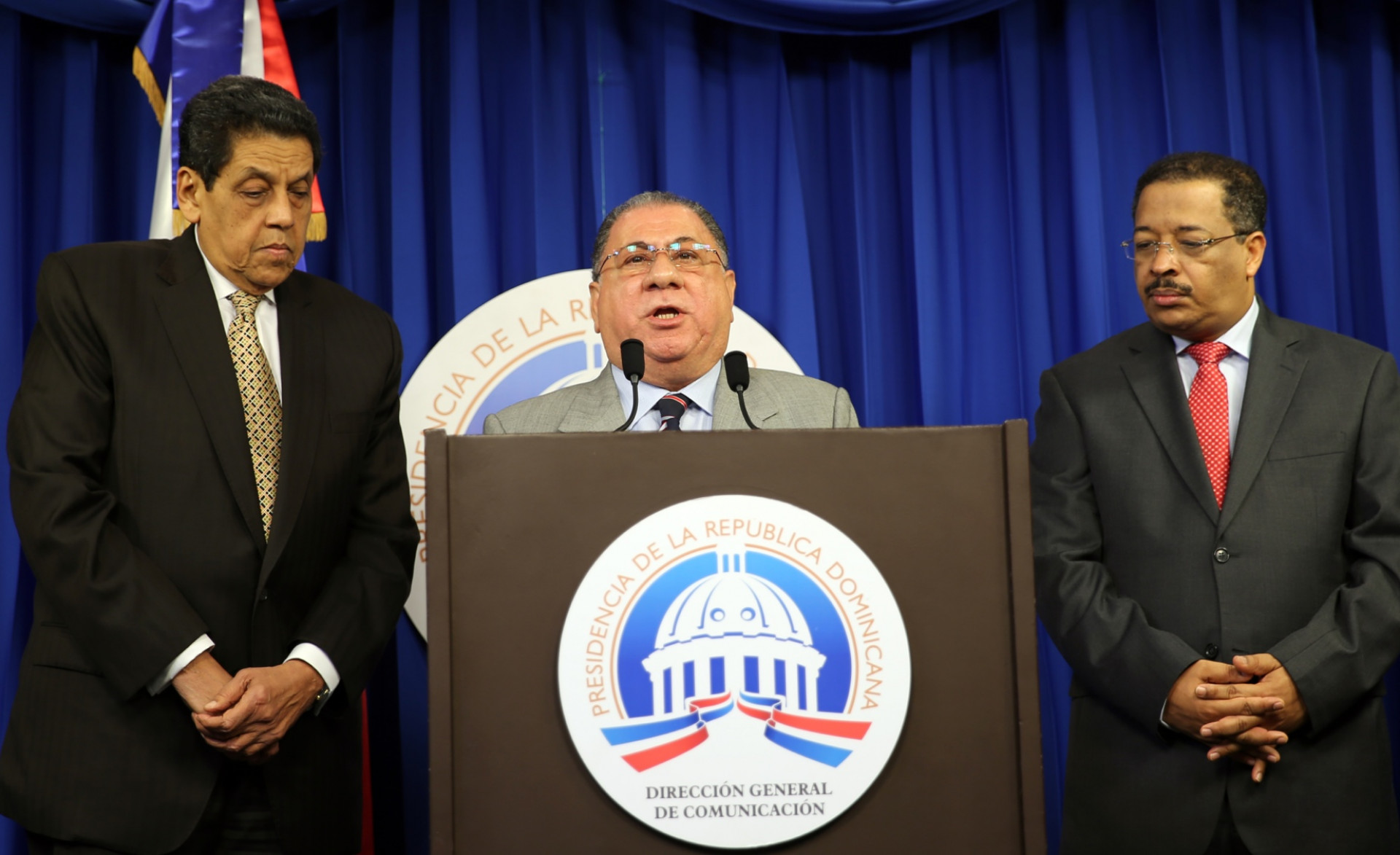 José Ramón Fadul, ministro de Interior y Policía, y presidente del Consejo, mientras anuncia la reunión del Consejo Nacional de Migración, que estará encabezada por el presidente Danilo Medina, en el Palacio Nacional. Foto: Presidencia República Dominicana.