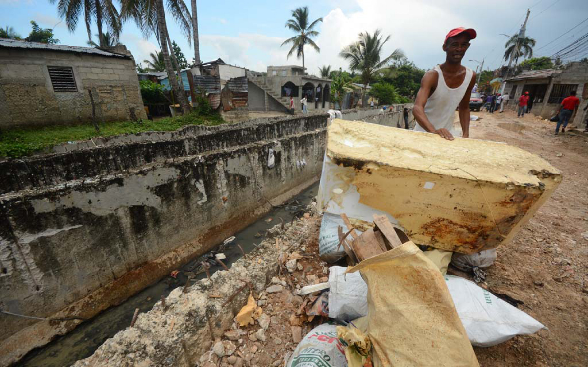 Vista del momento en que se realizan los trabajos de saneamiento en la Cañada Bonavides, de esta capital, prometidos a los moradores de la zona y ordenados de inmediato por el presidente Danilo Medina.
