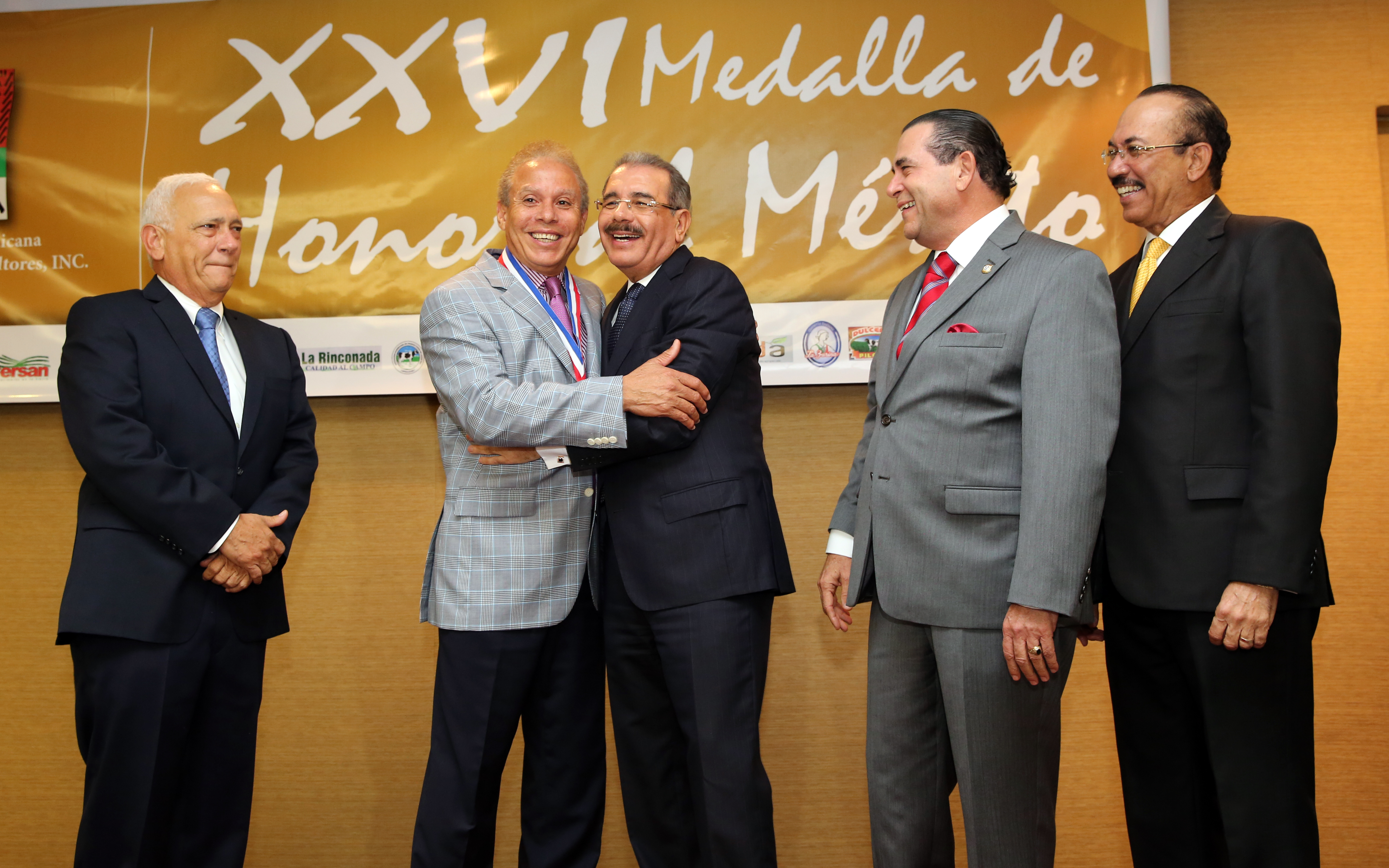 Presidente Danilo Medina, al entregar la Medalla al Mérito a 15 destacados productores agropecuarios y hacendados del pais, en acto organizado por la Asociación Dominicana de Hacendados y Agricultores (ADHA), y celebrado hoy en un hotel de esta capital.