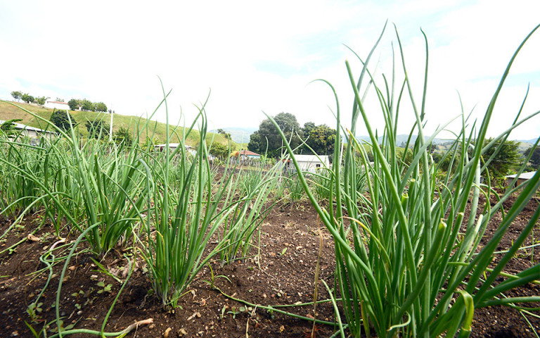 Cultivos de cebolla realizadas por mujeres de la zona, organizadas en asociaciones de productores de vegetales de Las Lagunas, en Padre las Casas, Azua.