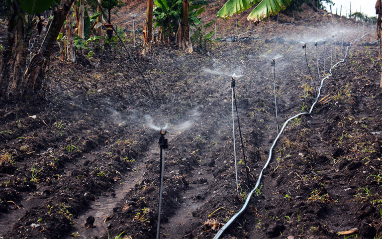 Plantaciones de vegetales del municipio Las Lagunas, en Padre las Casas, Azua, donde se aprecia un sistema de riego que moja sus cultivos, adquiridos mediante préstamos a bajos intereses dispuesto por el gobierno.