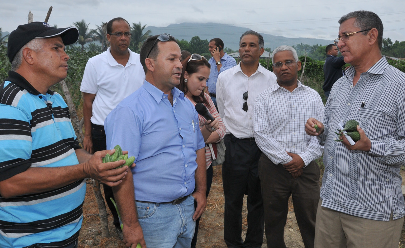 Antonio López, director del Feda, al conversar con directivos de de la Asociación de Agricultores de Laguna de Nisibón, municipio de Higuey, provincia La Altagracia, presentes y quienes recibieron prestamos colectivos como parte del apoyo prometido por el Mandatario. Foto: Presidencia República Dominicana.