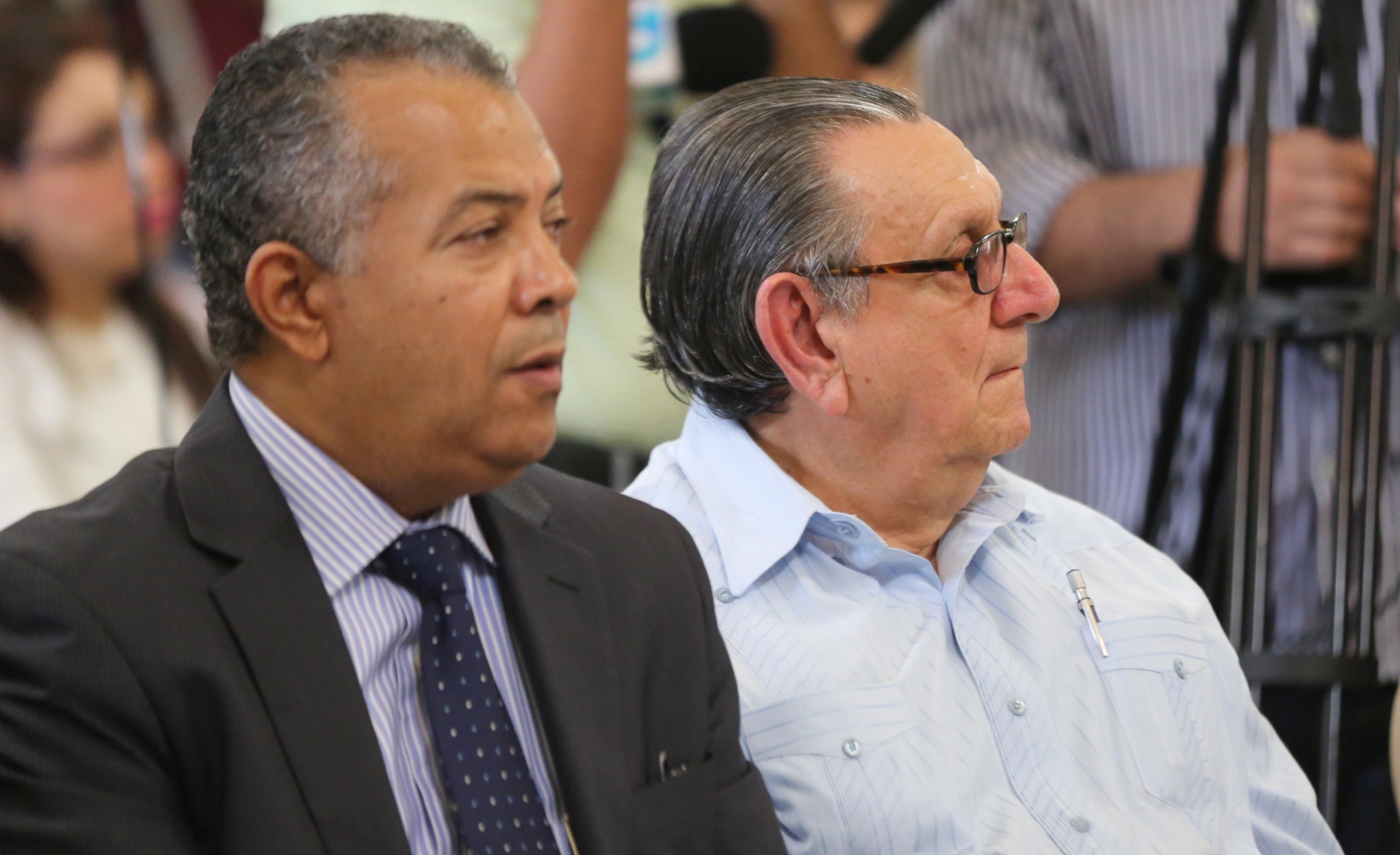 Ejecutivos de medios presentes durante el encuentro efectuado con el ministro Administrativo de la Presidencia, José Ramón Peralta, en el Palacio Nacional.