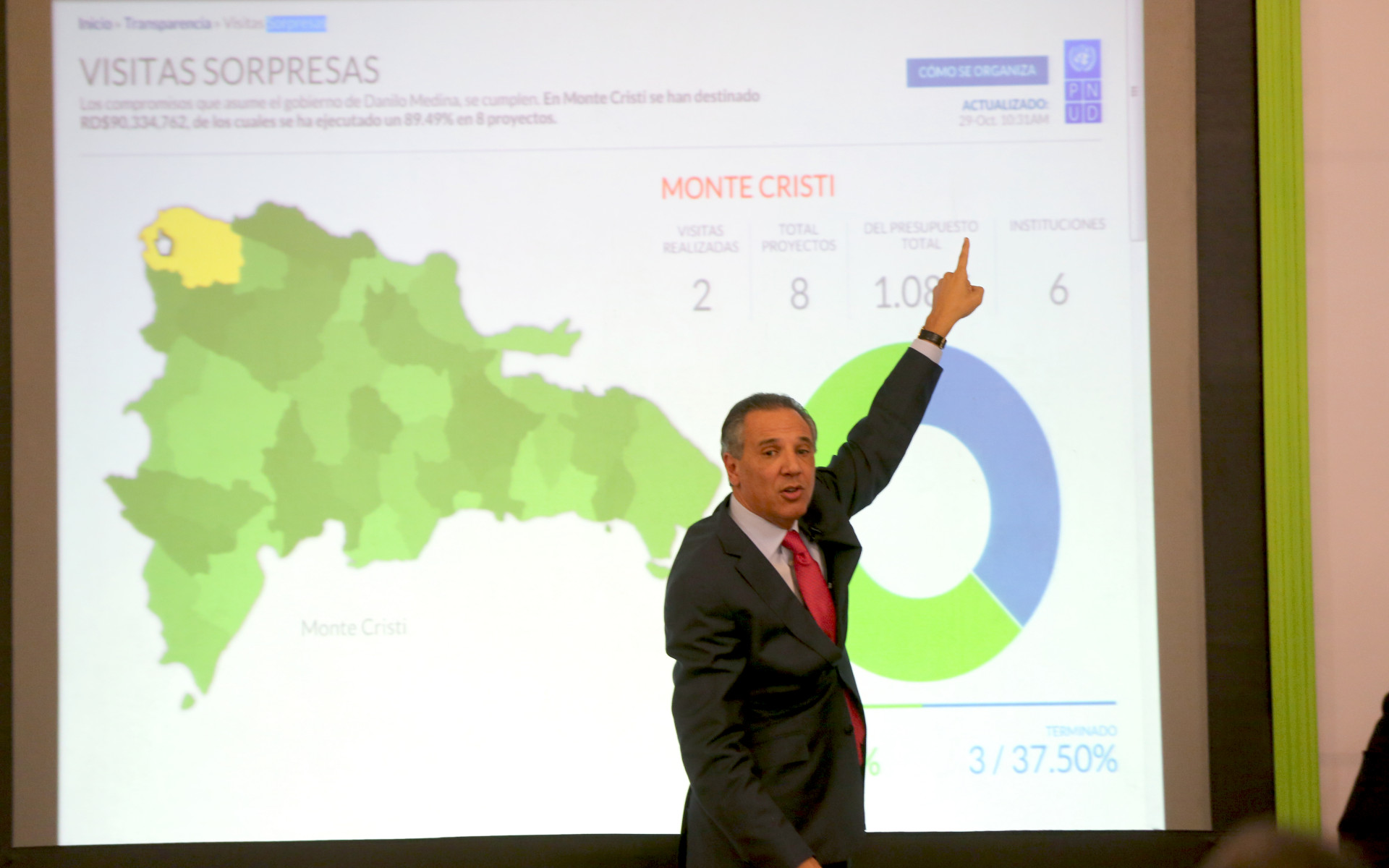 Participacion del ministro Administrativo de la Presidencia, José Ramón Peralta quien dio a conocer detalles sobre los proyectos en los que se compromete el mandatario durante las referidas visitas.