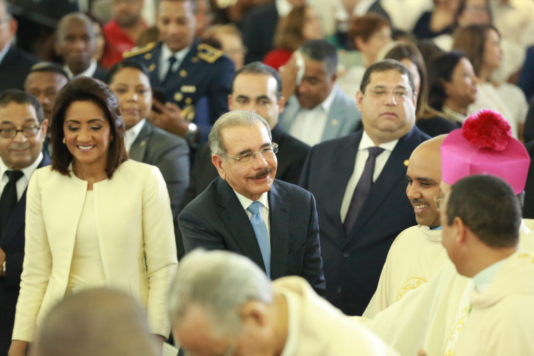 El presidente Danilo Medina y su esposa Cándida Montilla de Medina, asisiteron hoy a la ordenación de monseñor Ramón Benito Ángeles Fernández, monseñor Jesús Castro Marte y monseñor Faustino Burgos Brisman.