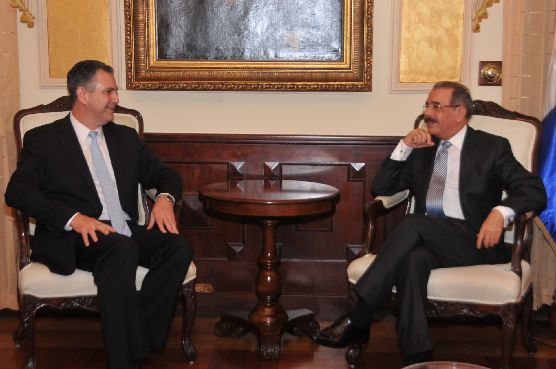 Presidente Danilo Medina y Francisco Sánchez, subsecretario de Estado de Comercio de EE.UU., durante encuentro con el Mandatario en su despacho del Palacio Nacional, donde trataron tema eléctrico y la importancia para el país del uso del gas natural para el desarrollo sostenible.