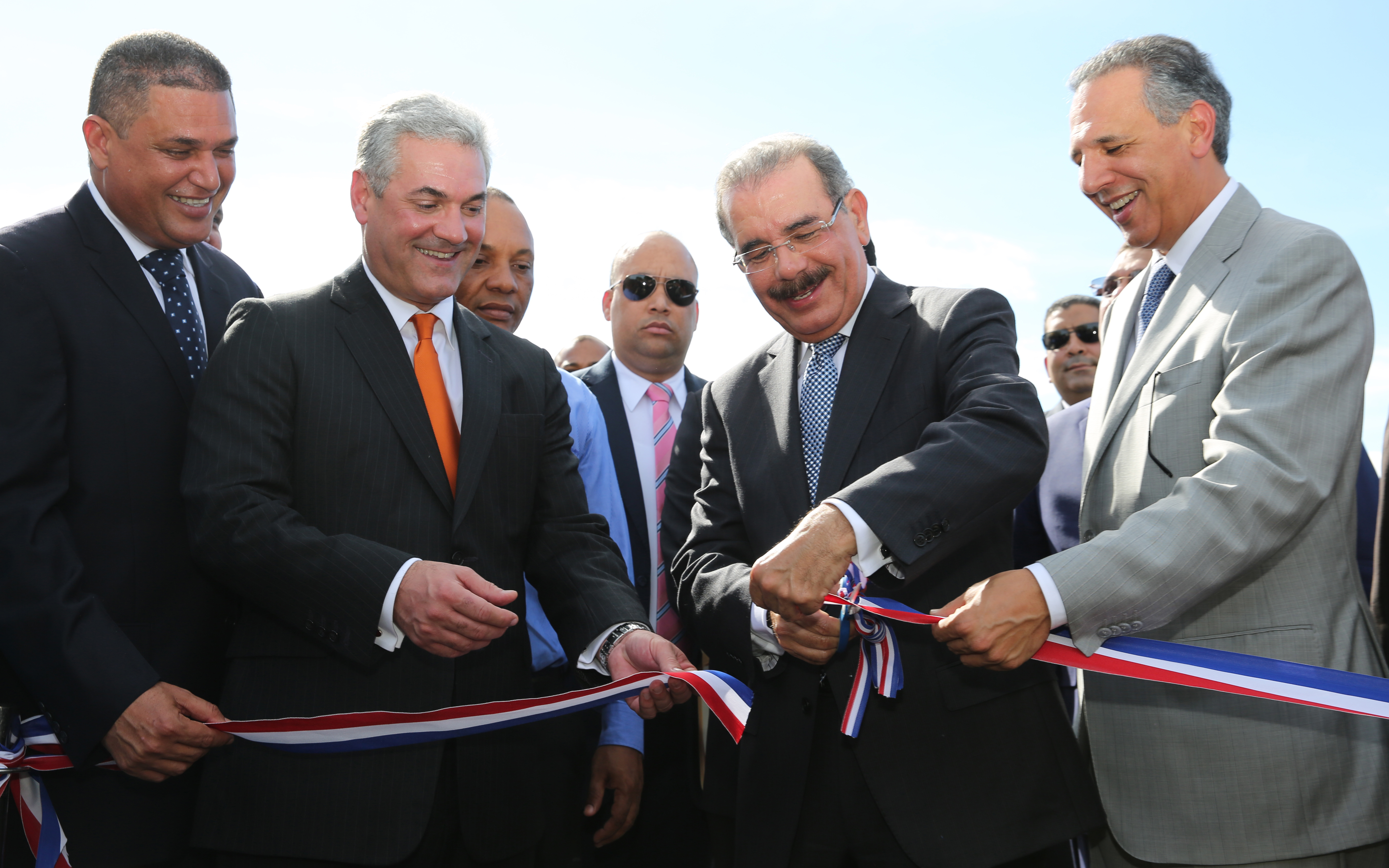 Participación del presidente Danilo Medina, durante ceremonial de corte de cinta para dejar inaugurado el Malecón de Cabrera. Figuran además los ministros José Ramón Peralta, Gonzalo Castillo, de Obras Pública; Freddy Hidalgo Núñez, de Salud Pública; el director del FEDA; y el director de IAD, entre otras autoridades de la zona.