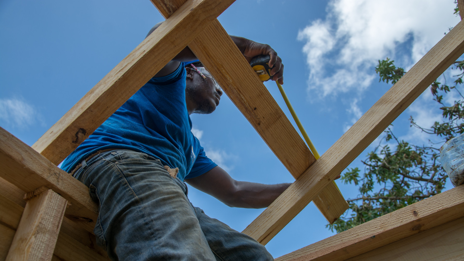 Obreros de la Unidad Acción Rápida del INVI, reparan y construyen viviendas en comunidades en dificultad, como en Loma Atravesada, Las Galeras de Samaná, tras el paso del huracán Irma. Ganan dinero y son solidarios.