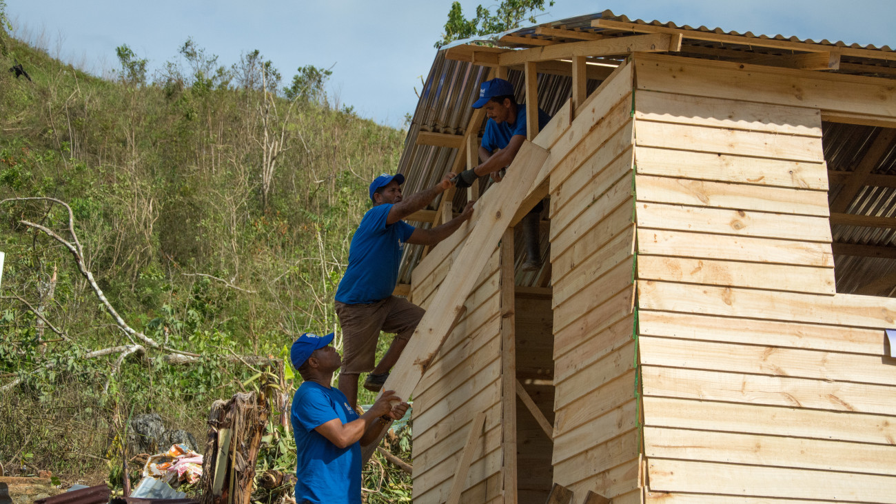 Obreros de la Unidad Acción Rápida del INVI, reparan y construyen viviendas en comunidades en dificultad, como en Loma Atravesada, Las Galeras de Samaná, tras el paso del huracán Irma. Ganan dinero y son solidarios.