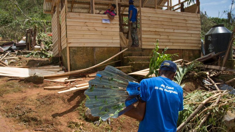 Obreros de la Unidad Acción Rápida del INVI, reparan y construyen viviendas en comunidades en dificultad, como en Loma Atravesada, Las Galeras de Samaná, tras el paso del huracán Irma. Ganan dinero y son solidarios.