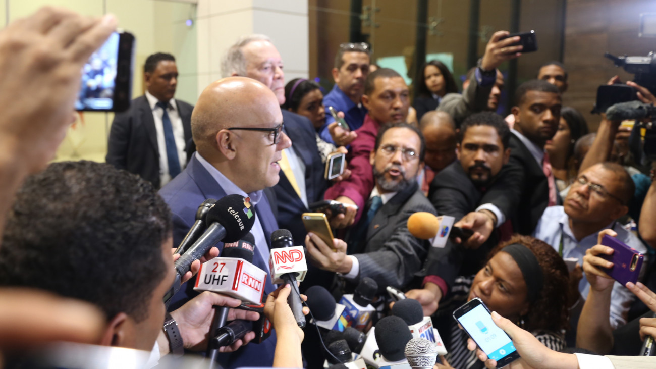 “Expresamos nuestro profundo agradecimiento, admiración, por la entrega que ha demostrado Danilo Medina”, dijo Jorge Rodríguez, alcalde de El Libertador en Caracas designado por Nicolás Maduro para estas conversaciones.
